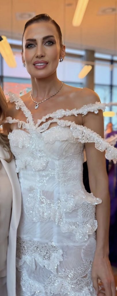 Juana Martín vuelve a demostrar por qué es una de las grandes voces del diseño español actual. La pieza combina artesanía, técnica y vanguardia bajo un sello inequívoco: Made in Spain. No se trata únicamente de un vestido de alfombra roja, sino de una construcción textil donde cada volumen está pensado para dialogar con el cuerpo de la modelo.